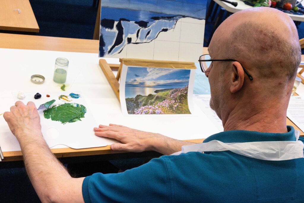 To launch this year’s creative activity, local artist Lindsay Pritchard led a five week introduction to oil painting at G5 Studio, in Wolverhampton Arts Centre (formerly the Newhampton Arts Centre) for members of the Good Shepherd’s art group.