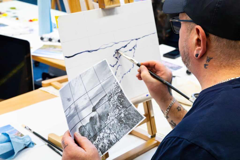The series began with an exploration of colour mixing with oils, before the group embarked on a four week detailed landscape project. Lindsay guided the group step‑by‑step through each stage and layer of the painting process, allowing participants to build technical confidence and creative expression.